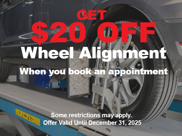 Get $20 OFF a wheel alignment, when you book an appointment.